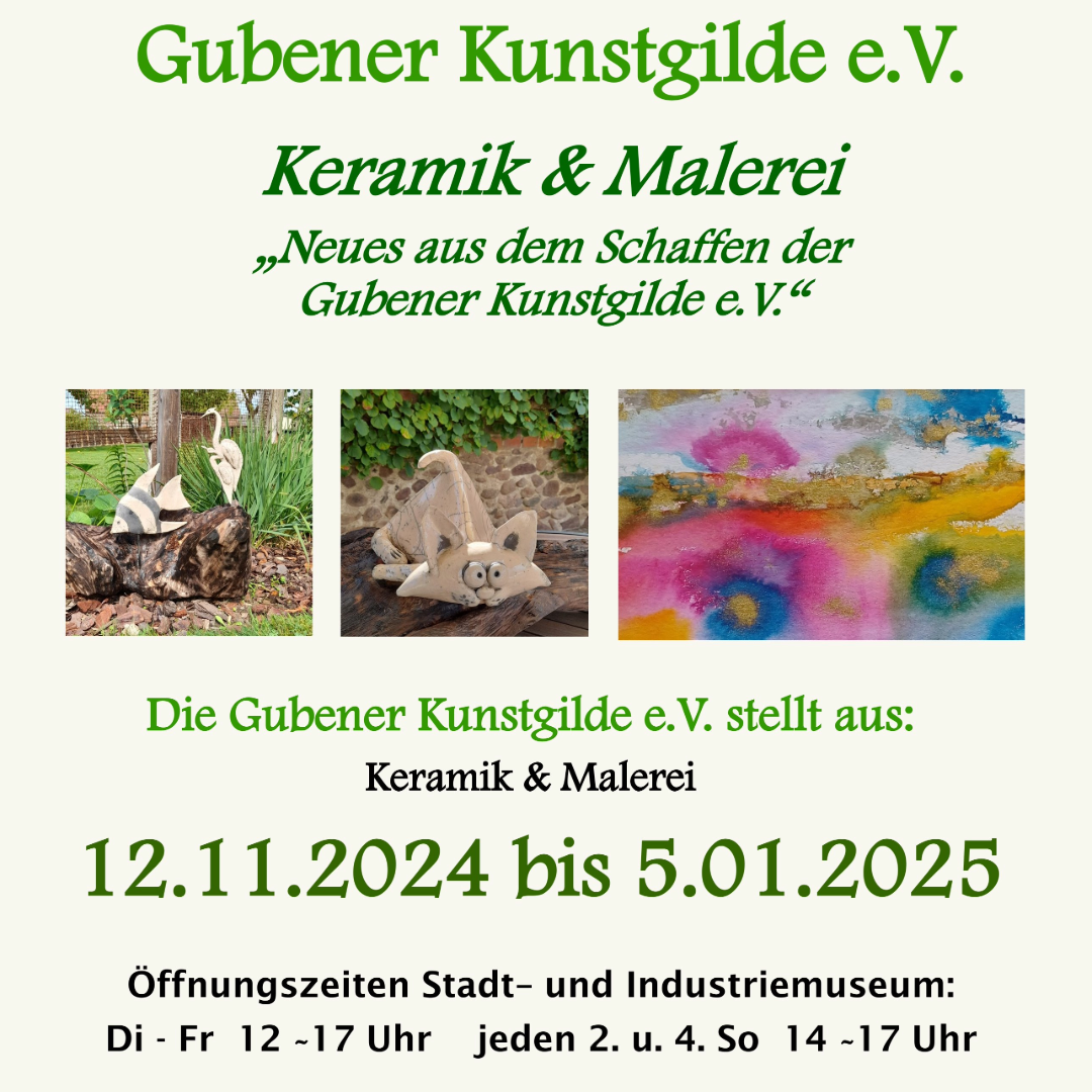 Die Gubener Kunstgilde e.V. präsentieren nach schöpferischer Pause im Stadt- und Industriemuseum in...